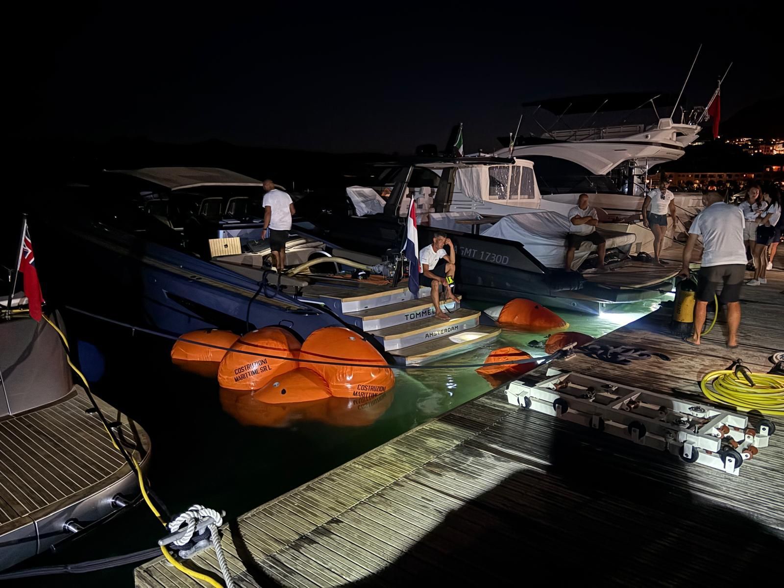 palloni di sollevamento e pontoni galleggianti, selezionati in base alle dimensioni e al peso del natante, per riportare l’imbarcazione in superficie in totale sicurezza.