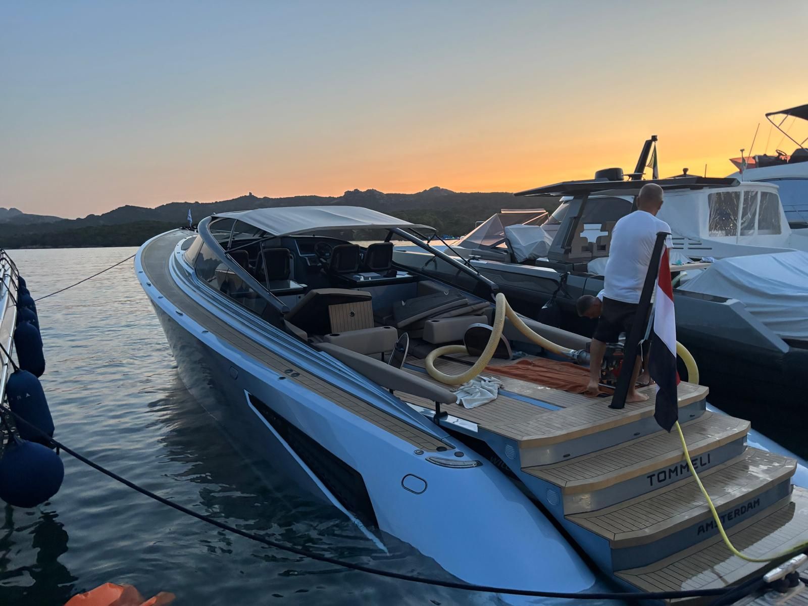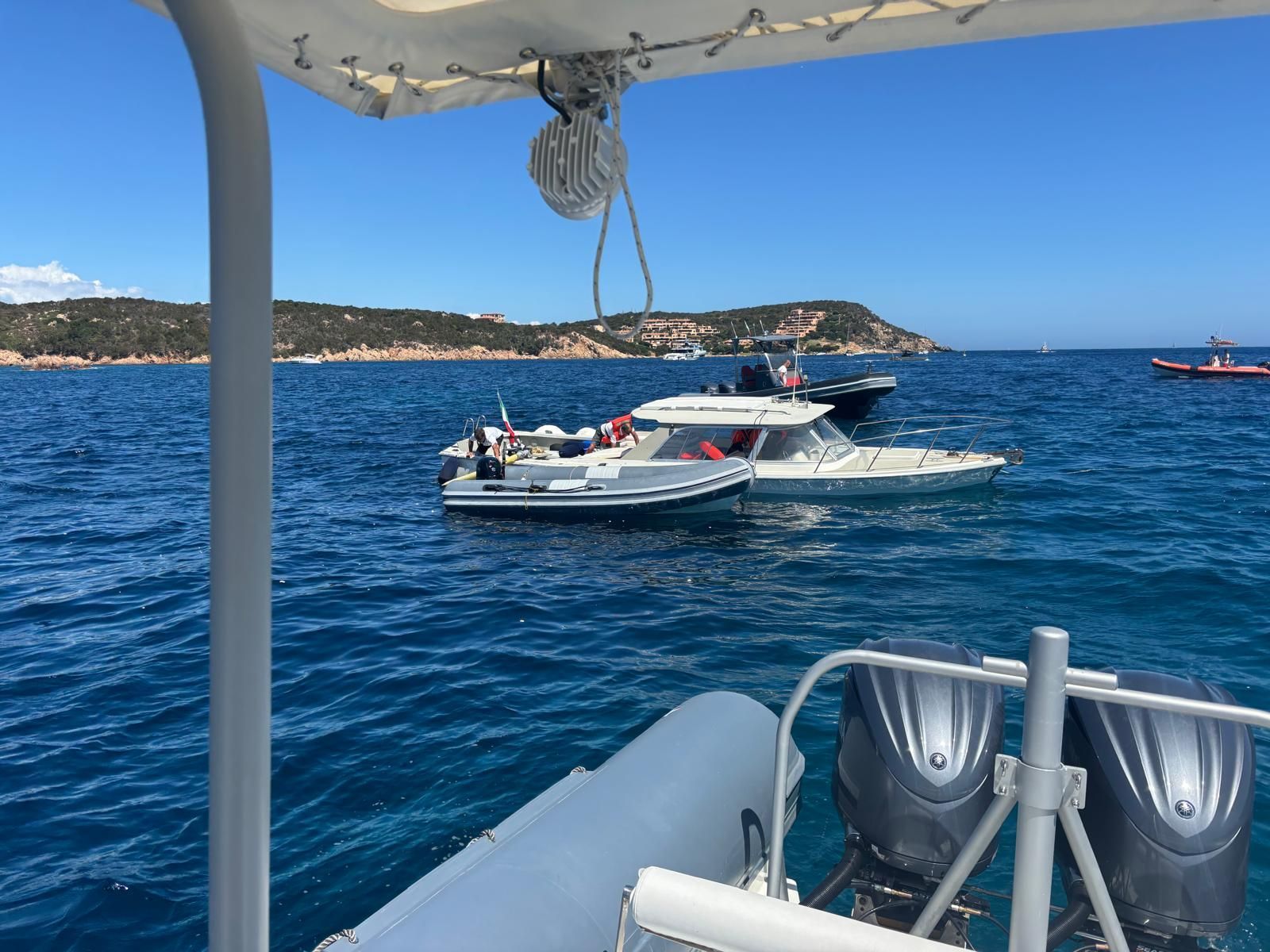 gommone da 10 metri, con velocità fino a 50 nodi, ideale per raggiungere in breve tempo le aree d’intervento, e di un